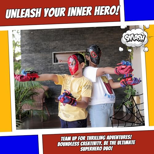 - All-in-One Superhero Kit - This set includes 2 web shooters, 2 masks, 2 gloves, and 1 cape — offering kids ages 3 and up a full superhero adventure. Whether indoors or outdoors, this all-in-one toddler toys bundle lets kids dive into imaginative play and create their own action-packed stories.