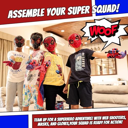 Superhero Web-Slinging Toy Set – 7-in-1 Superhero Set Includes 2 Web Shooters, 2 Hero Masks, 2 Gloves, and 1 Cape – Ideal for Indoor and Outdoor Costume Role-Playing, Imaginative Play for Kids Ages 3+